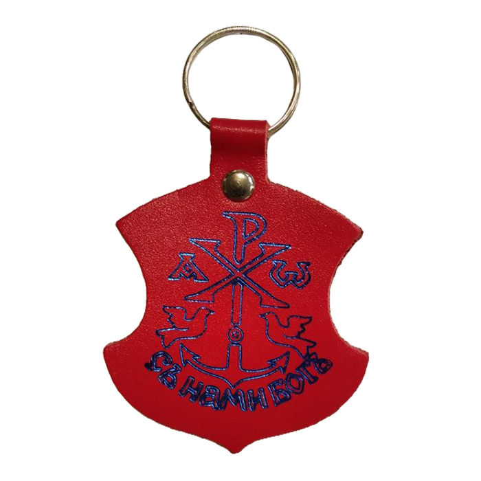 7101 Брелок из кожи «Щит» с тиснением (красный)