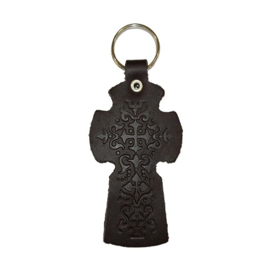 7101 Брелок «Крест» с тиснением молитв и символов (тёмно-коричневый)