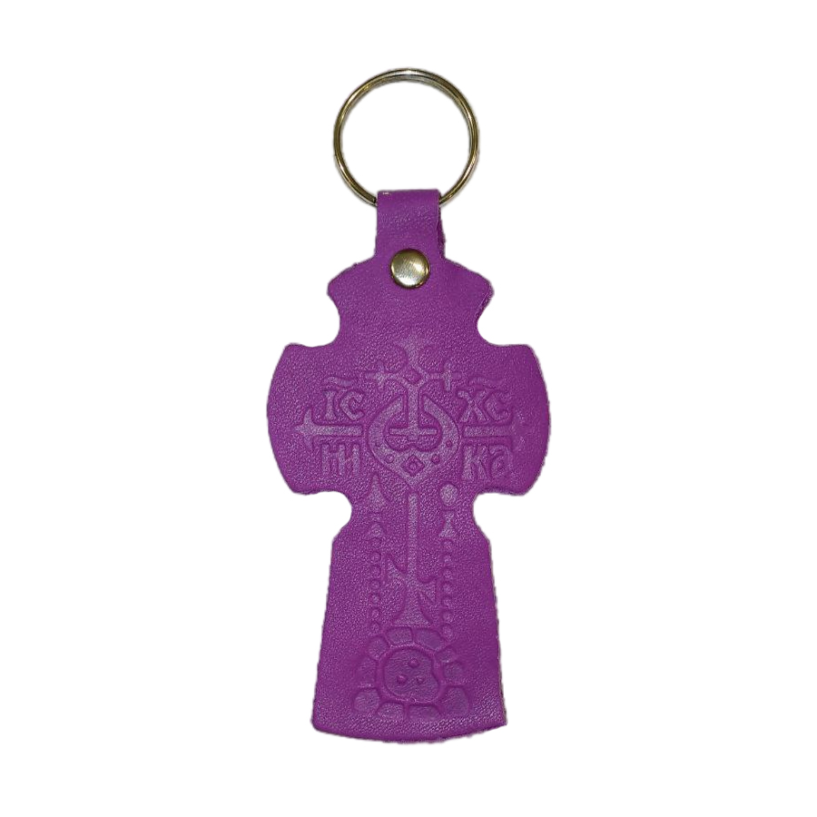 7101 Брелок «Крест» с тиснением молитв и символов (фиолетовый)
