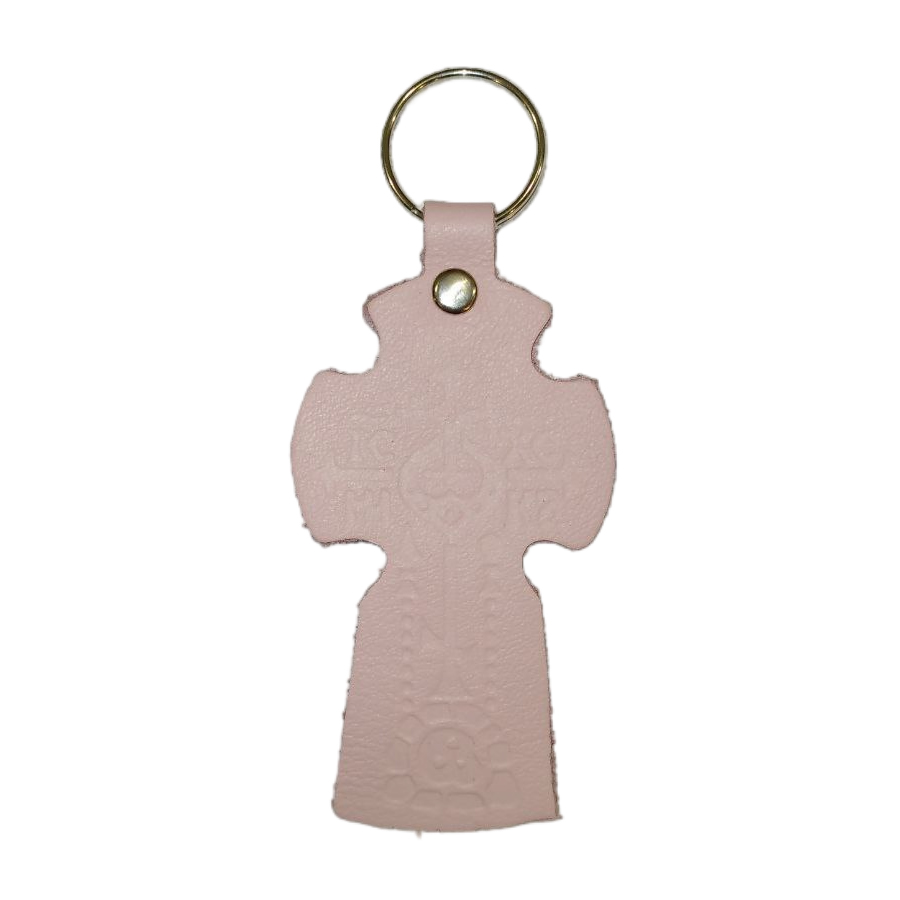 7101 Брелок «Крест» с тиснением молитв и символов (розовый)