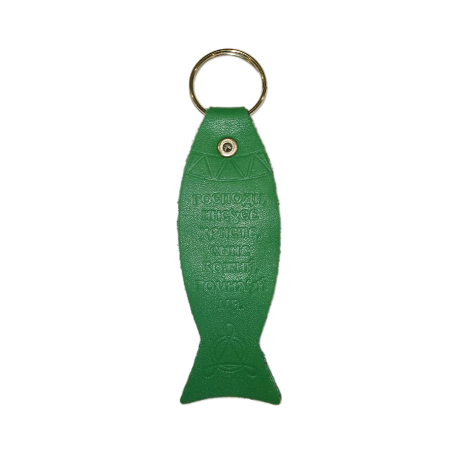 7101 Брелок «Рыбка» с тиснением молитв и символов (зелёный)