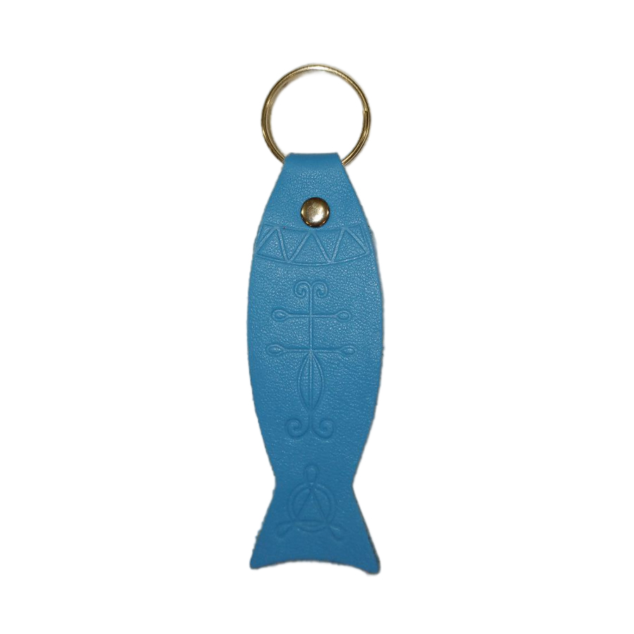 7101 Брелок «Рыбка» с тиснением молитв и символов (синий)