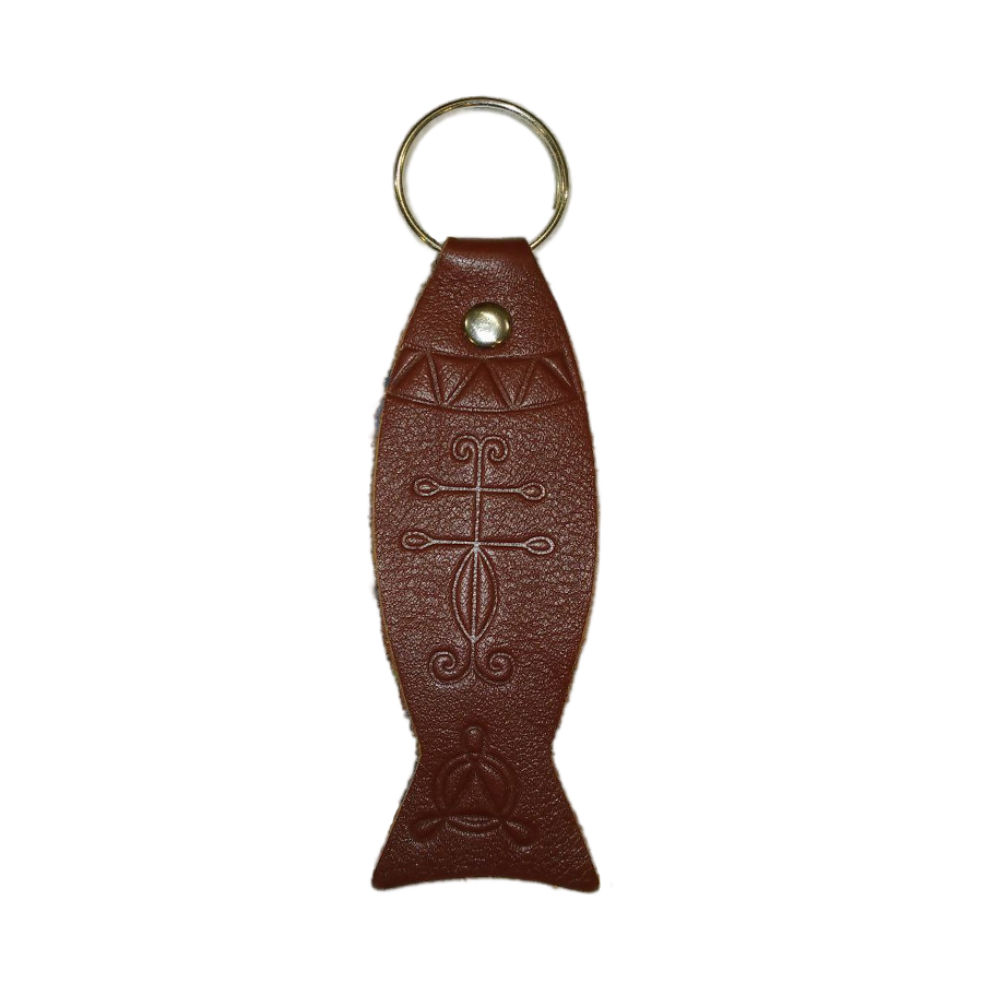 7101 Брелок «Рыбка» с тиснением молитв и символов (тёмно-коричневый)