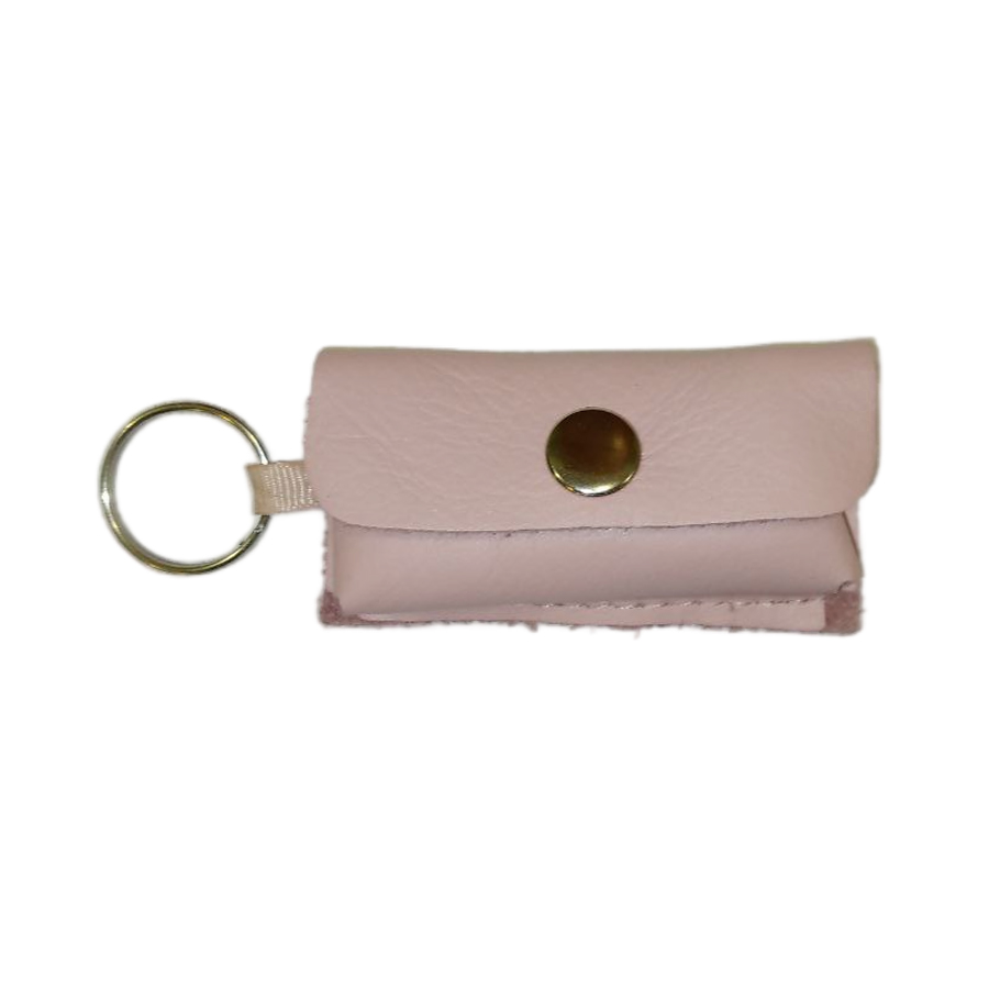7138_2 Брелок «Карманчик» на кнопке с тиснением символов и молитвы внутри (розовый)