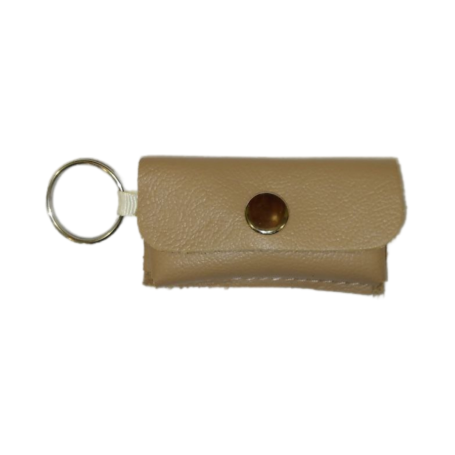 7138_2 Брелок «Карманчик» на кнопке с тиснением символов и молитвы внутри (бежевый)