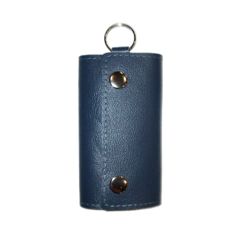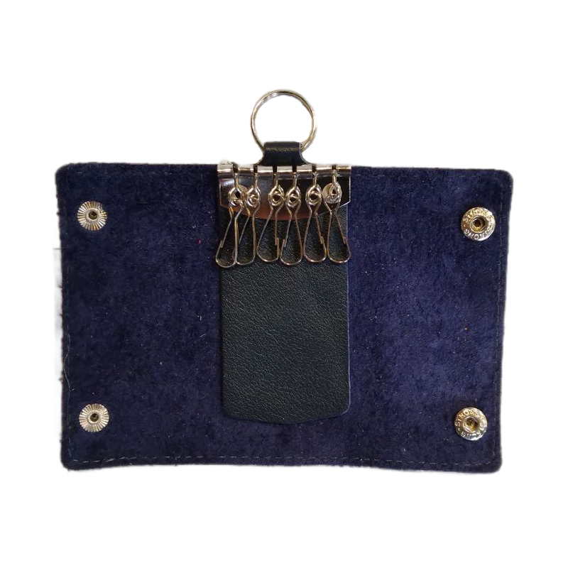 Ключница из кожи «книжка» с кольцом, шесть карабинов (тёмно-синяя)