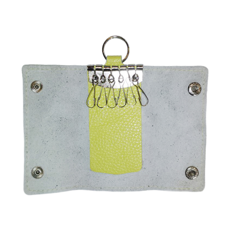 Ключница из кожи «книжка» с кольцом, шесть карабинов (жёлтая)