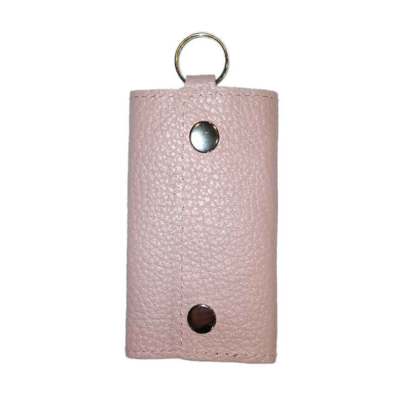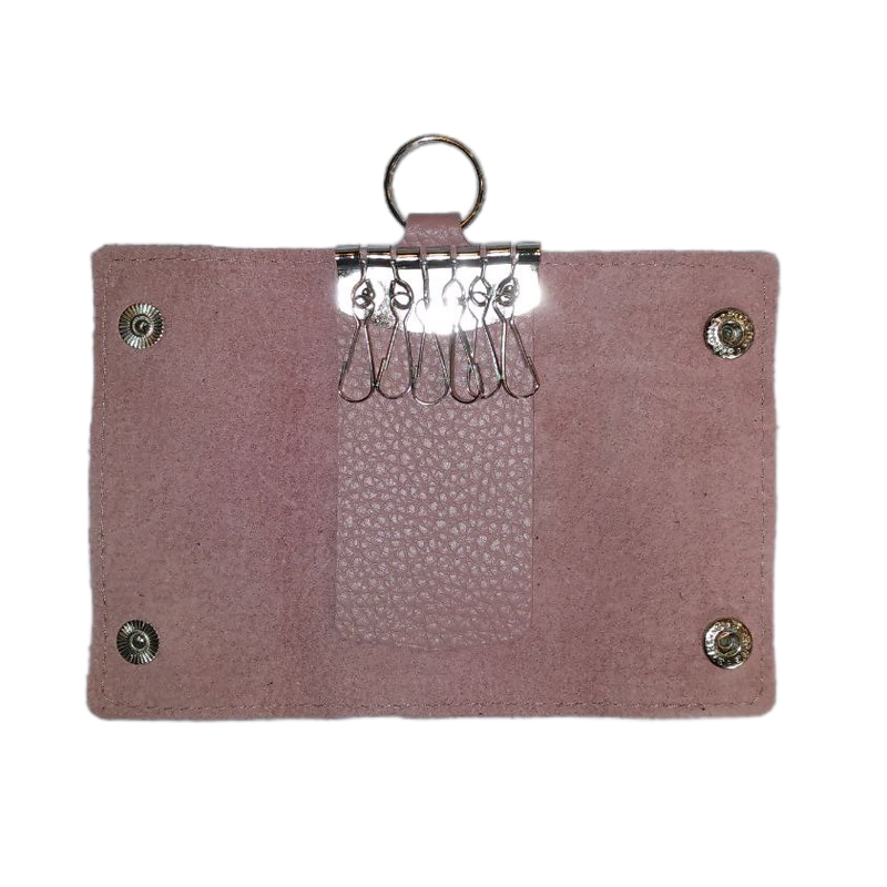 Ключница из кожи «книжка» с кольцом, шесть карабинов (розовая)