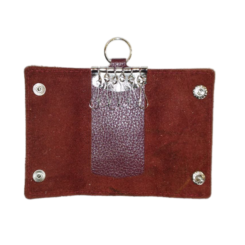 Ключница из кожи «книжка» с кольцом, шесть карабинов (бордовая)