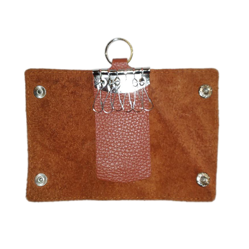 Ключница из кожи «книжка» с кольцом, шесть карабинов (коричневая)