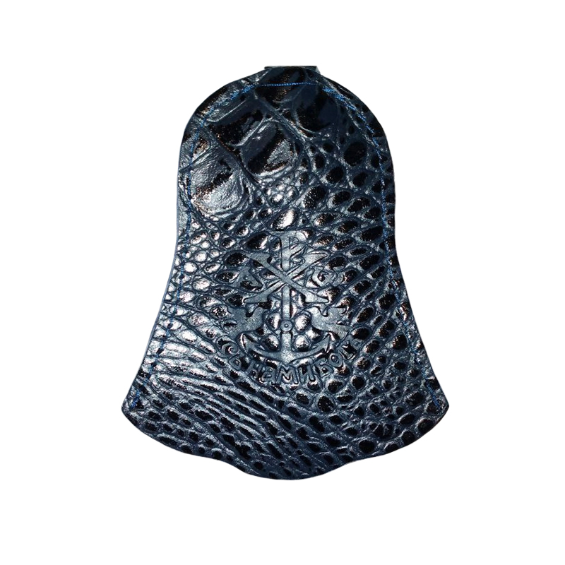 Ключница из кожи «Колокол» с текстурой и тиснением «С нами Бог» (тёмно-синяя)