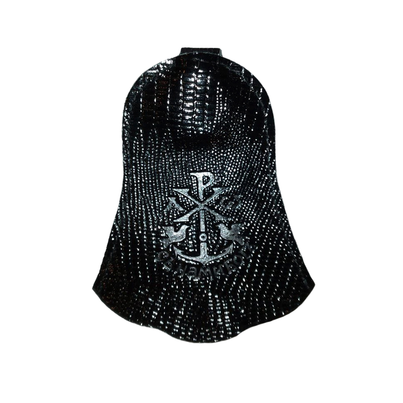 Ключница из кожи «Колокол» с текстурой и тиснением «С нами Бог» (черная)