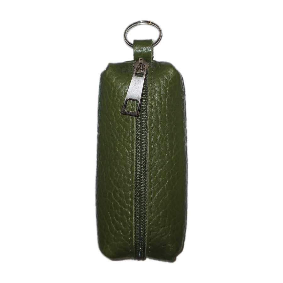Ключница закрывается на застежку-молнию, внутри находится металлическое кольцо с карабином для ключей.