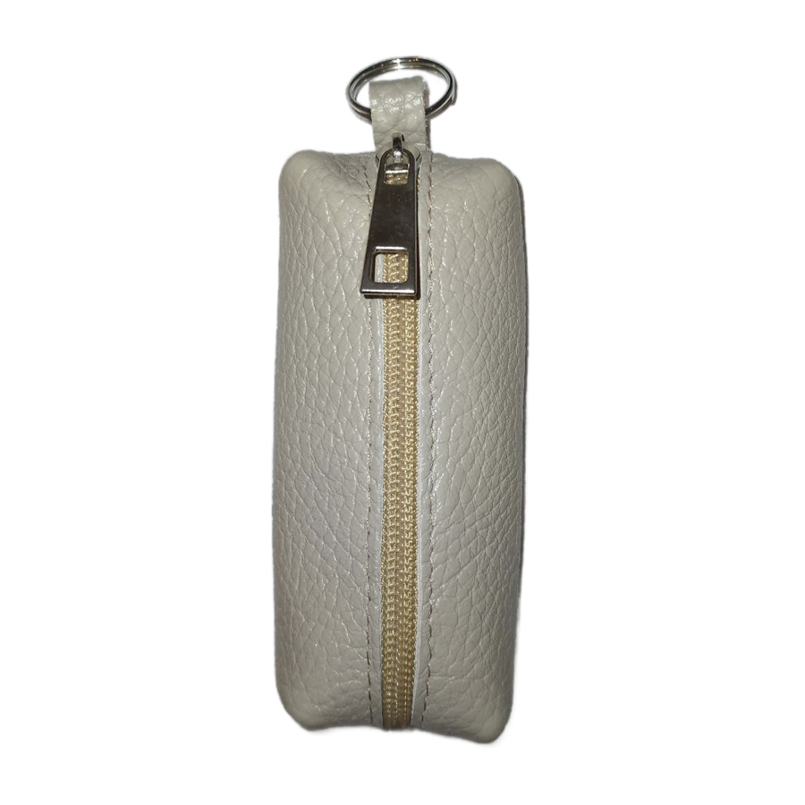 Ключница закрывается на застежку-молнию, внутри находится металлическое кольцо с карабином для ключей.