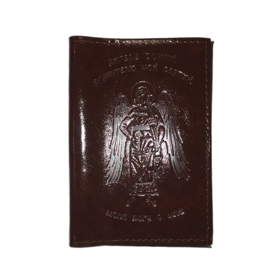 5501Ан Обложка для паспорта из кожи с тиснением Ангела-хранителя (коричневый лак)
