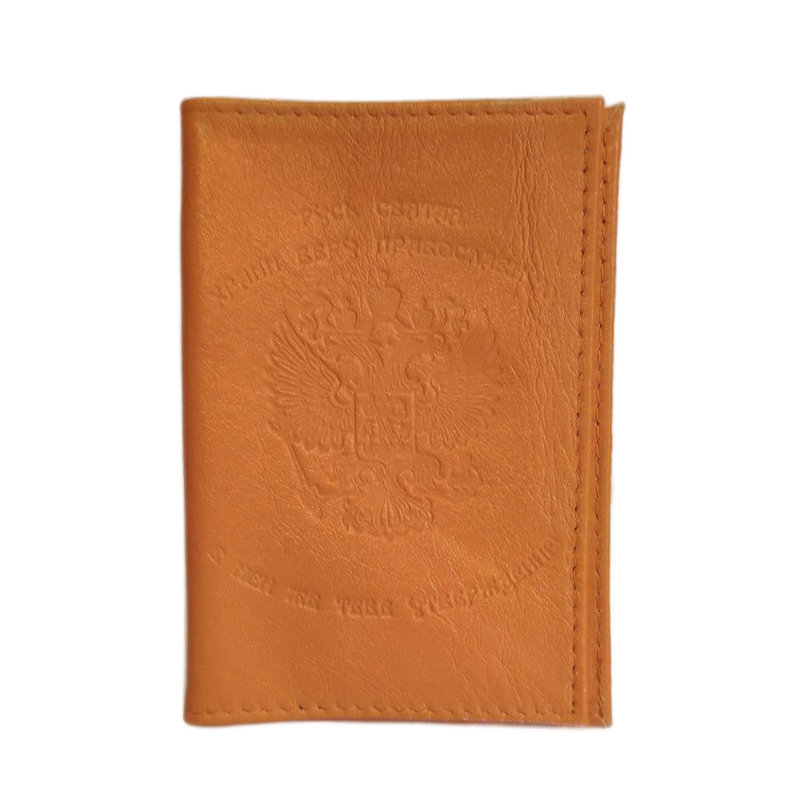 5501Гр Обложка для паспорта из кожи с тиснением герба России (оранжевая)