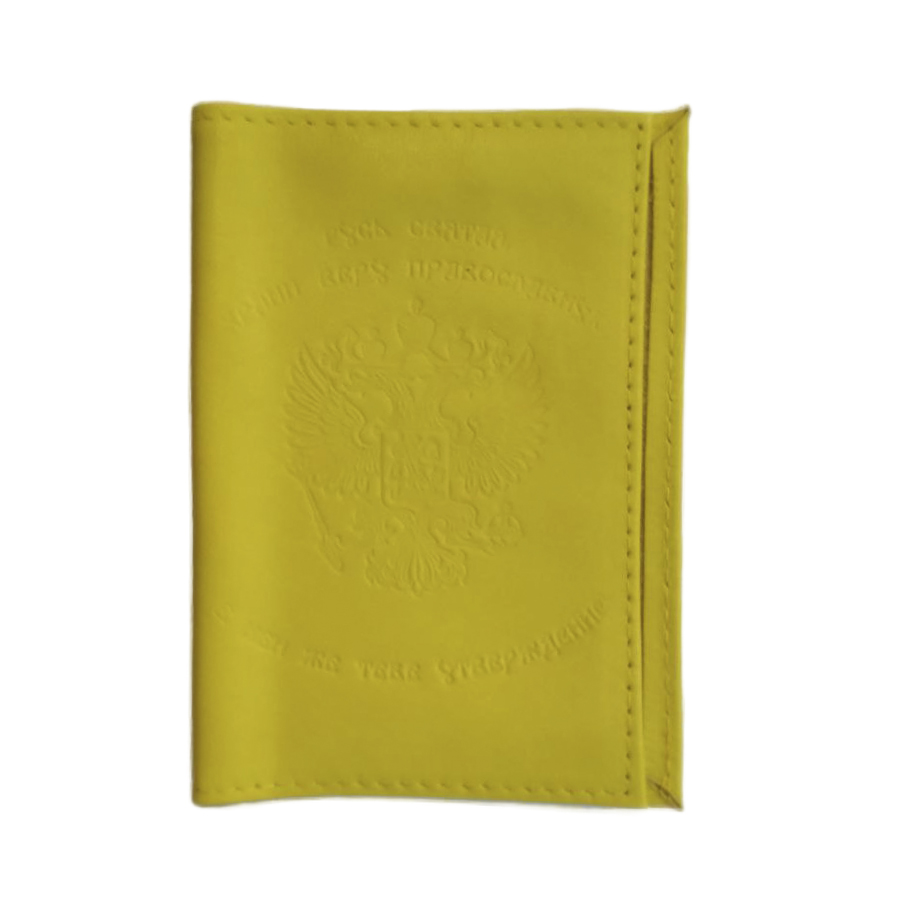 5501Гр Обложка для паспорта из кожи с тиснением герба России (жёлтая)