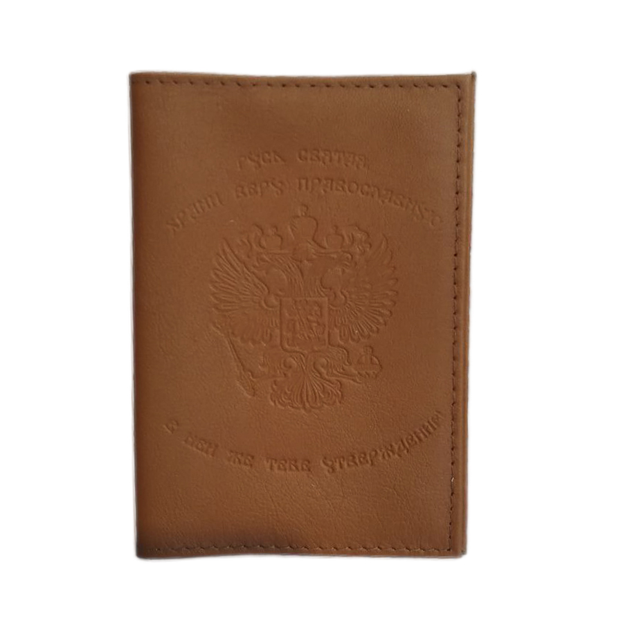 5501Гр Обложка для паспорта из кожи с тиснением герба России (коричневая)