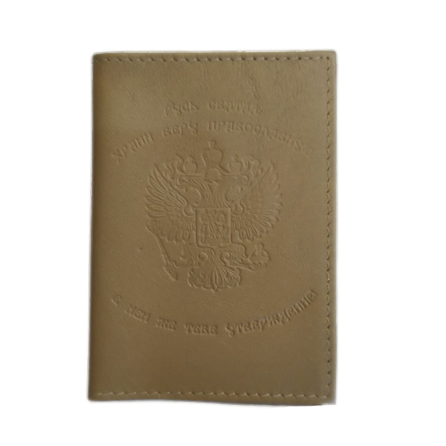 5501Гр Обложка для паспорта из кожи с тиснением герба России (бежевая)