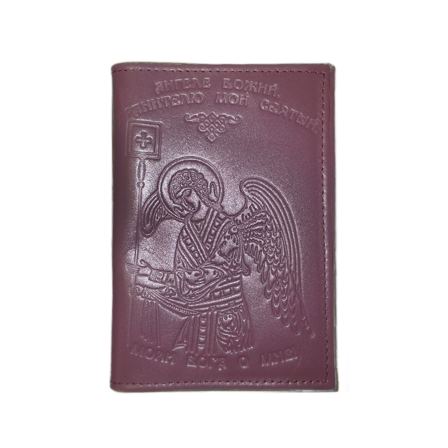 8101Ан Обложка для паспорта из кожи с тиснением Ангела-хранителя (бордовая)