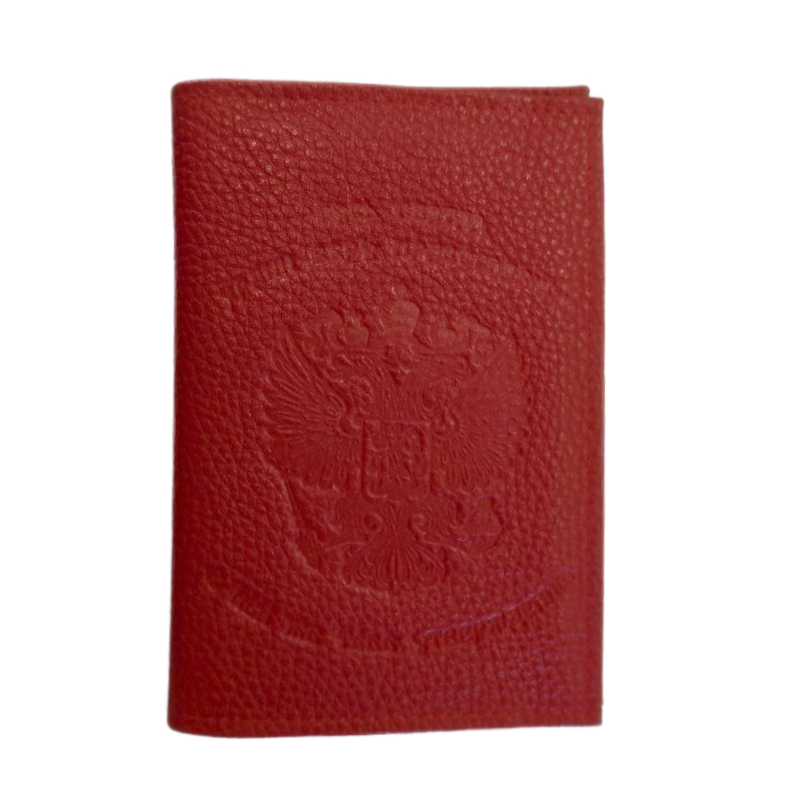 8101Гр Обложка для паспорта из кожи с тиснением Герба (красная)