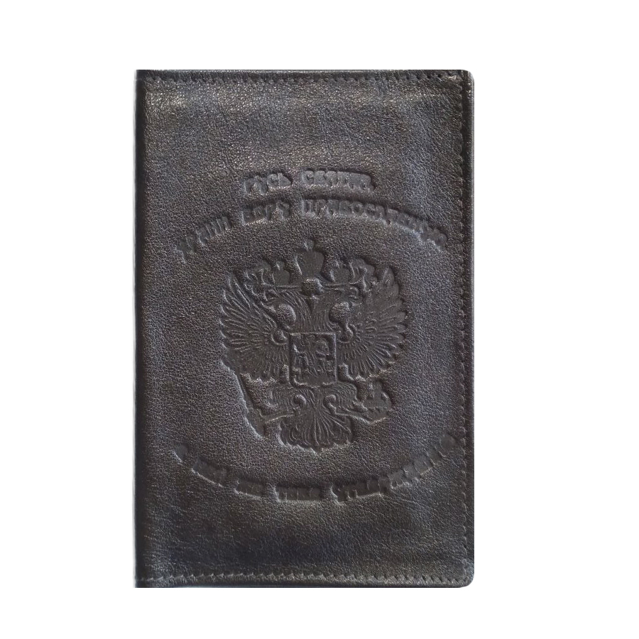 8101Гр Обложка для паспорта из кожи с тиснением Герба (чёрная)