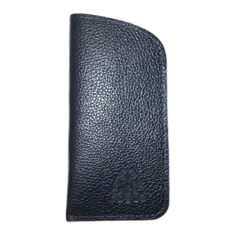 Футляр для очков «кармашек» из натуральной кожи с тиснением (тёмно-синий)