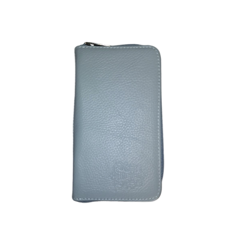 Портмоне женское из натуральной кожи, на молнии, с тиснением (серое)