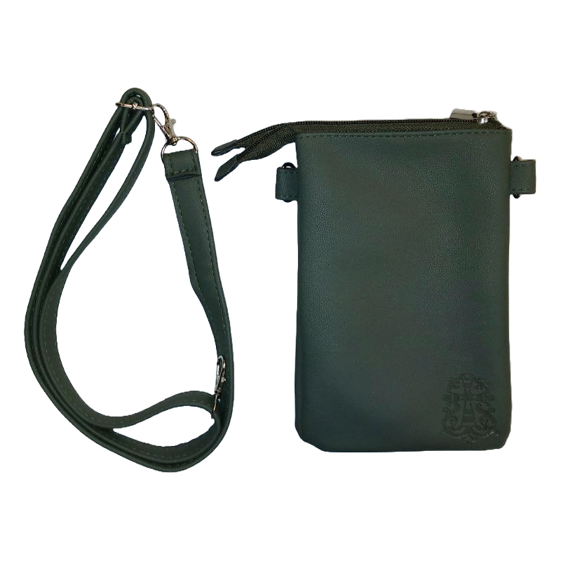 Сумка вертикальная, с двумя отделениями на молнии, с тиснением «Молитва Кресту» (зелёная)