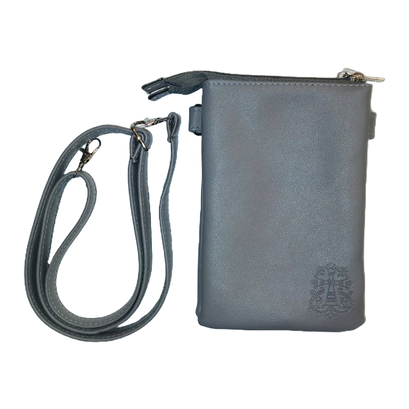 Сумка вертикальная, с двумя отделениями на молнии, с тиснением «Молитва Кресту» (серая)