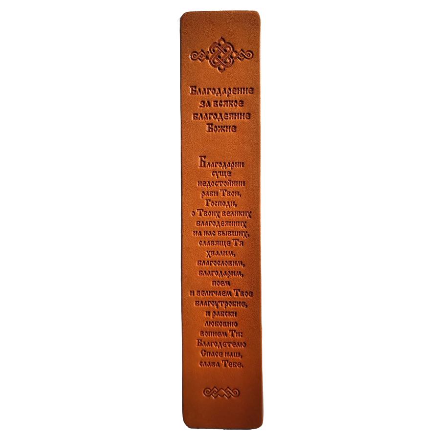 Уникальная закладка, выполненная из натуральной кожи и украшенная тиснением молитвы Благодарение.