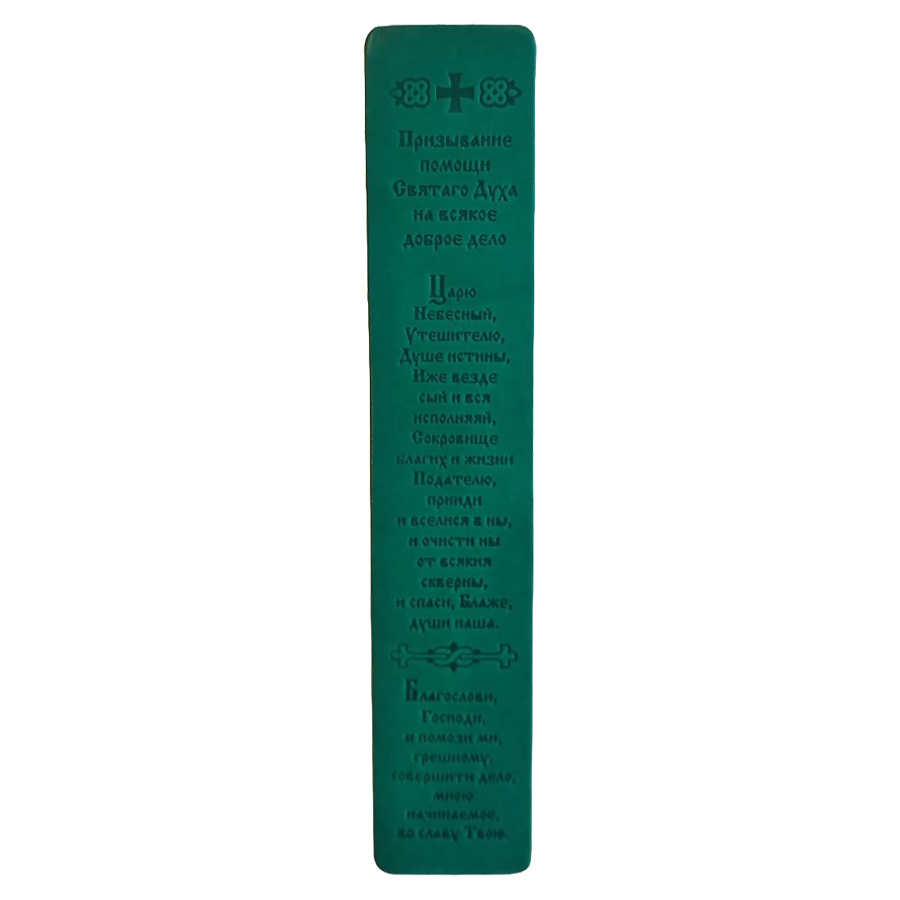 Уникальная закладка, выполненная из натуральной кожи и украшенная тиснением молитвы Призывание помощи Святого Духа.